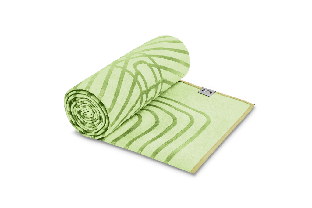 The GECKO WARRIOR – Classic yoga towel features a unique wet/dry grip Focus Alignment™ pattern made of tactile silicone, inspired by but not directly taken from ancient warrior cultures. It is available in a range of classic colors which are dyed using eco-friendly Oeko-Tex® dyes.